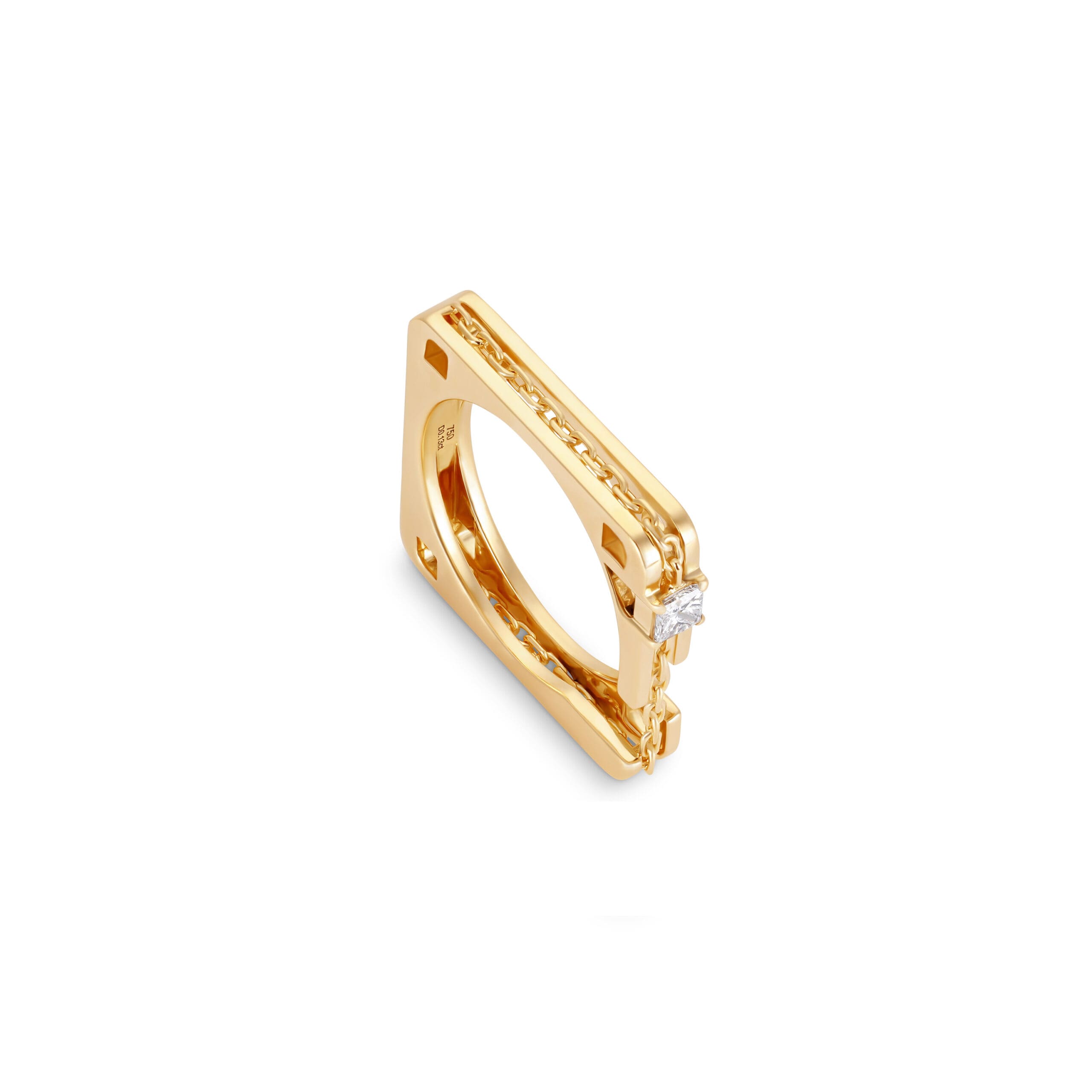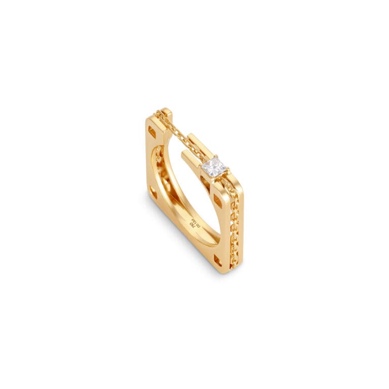 Crafted in 18k gold and set with 0.15 carats of diamonds, each curve reflects circulation and continuity, while diamond accents echo the pulse that moves endlessly within us. The structure balances strength and softness, mirroring the heart itself, powerful, intricate, and essential.